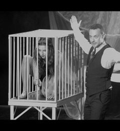 Aquí ya estamos hablando de palabras mayores, ponemos toda la carne en el asador y nos vamos a los grandes escenarios, Teatros, parques temáticos…. Un espectáculo con Bailarines, música, humo, luces, pero sobre todo magia, mucha magia. Podrás ver a una chica volar a más de tres metros del suelo, me encerrarán en un tanque encadenado y con más de 500 litros de agua… eso y mucho más.